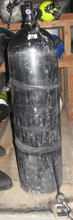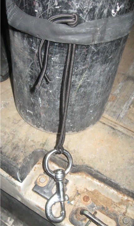 Where do you position the worm gear clamp along the body of the stage cylinder? Some people looked for a standard distance for the attachment points, or actually, where to mount the worm gear clamp that holds the bottom clip, but there just isn’t one. The positioning of the attachment points is dependent on the attachment points on the harness. The problem remained. Regardless of where the clip is attached, the bottom of the stage cylinder still becomes positively buoyant and floats up as gas is breathed from it. The shorter the torso, the more of a problem this is because the bottom attachment point has to be farther from the bottom of the cylinder.